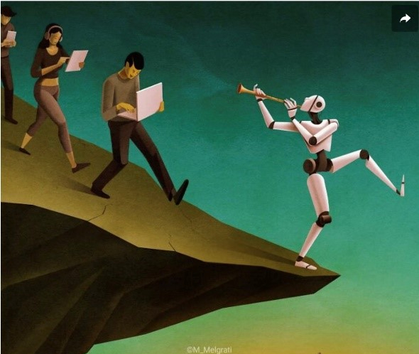 I had a chat with Google’s Bard (an AI chatbot) and asked what it saw as possible threats to humanity from AI; its reply was chilling: “AI systems might be optimized for goals that conflict with human well-being. For example, an AI designed to maximize efficiency might prioritize resource allocation in ways that harm humans.”[13] In other words AI might decide that humans are a threat because we are competing with AI for the same resources!